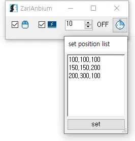 - (추가) 기존 마우스 위치 설정 창에서 마지막에 c 를 추가하면 해당 위치에서 클릭 이벤트가 발생됩니다.