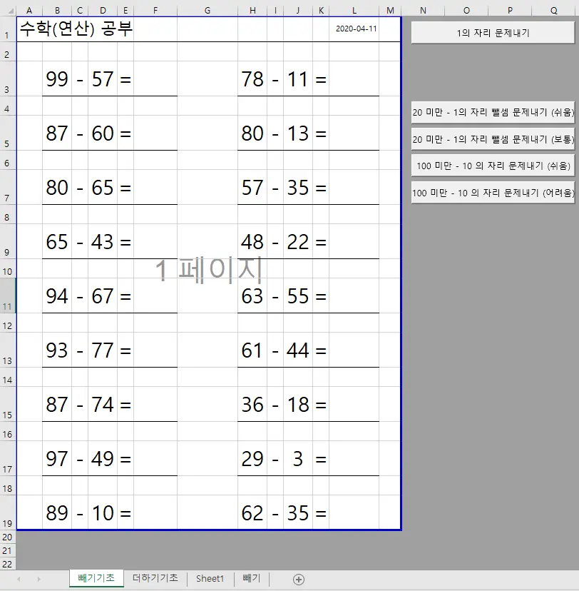 2020.06.22 - [DEV/VBA] - [vba] 초등학교 연산 자동 문제집 - 곱셈 추가