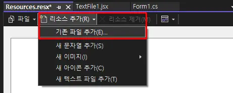 1. Properties > Resources.resx 내에 추가하는 방법