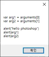 저의 경우는 포토샵 스크립트 파일 포멧인 jsx 로 추가하였고요. 좌측 내용을 보면 실행하면 그냥 "hello photoshop" 을 팝업으로 띄워주는 스크립트 입니다.