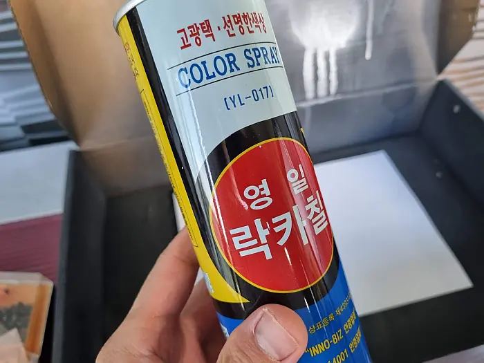 다이소에서 산 1000 원짜리 검정 페인트로 상판을 칠합니다.