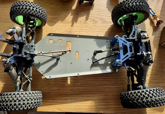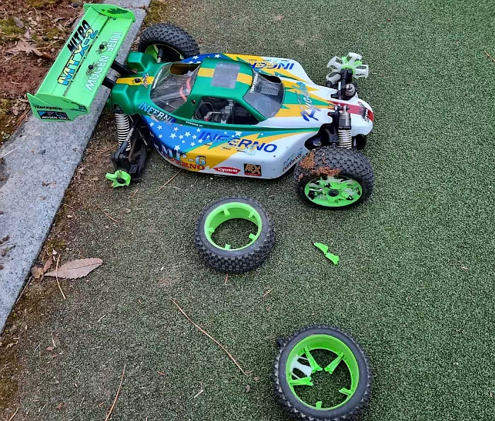 완전 대박 거래를 성공했고 차량을 보니 일단 두대 모두 송신기는 없는 상태였고 traxxas 슬래시는 전륜 서스펜션이 축이 휘어 정상 적으로 움직이지 않는 상태였고요, kyosho inferno 차량은 몬트에 알아보니 거의 20년이 되었다고 하네요. ㅋㅋ