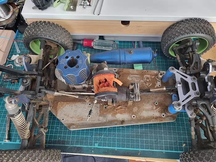 kyosho inferno 차량은 엔진으로 구동하는 RC 였는데.. 구조도 생소하고... 조금 알아보니 엔진을 관리할 엄두가 나지를 않더라고요, .. 게다가 엔진이 아예 굳어 버린 상태였습니다. 플라이 휠이 꿈쩍도 하지 않았습니다.